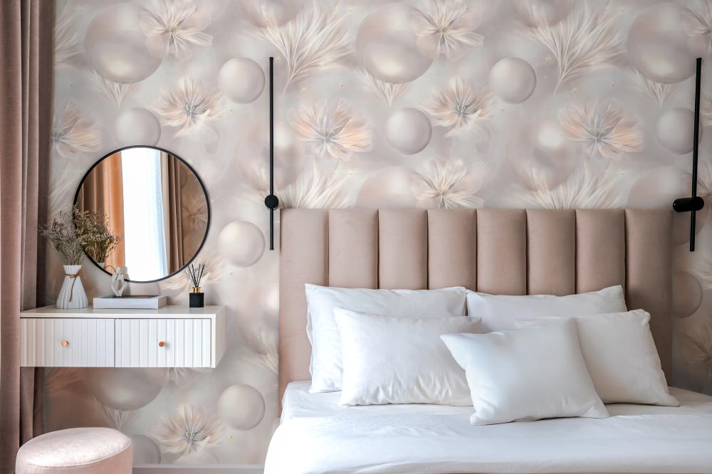 Обои для стен в современном стиле на флизелиновой основе PALITRA STYLE SL72483-24 Felicita бежевые метровые с цветочным рисунком для коридора, гостиной, спальни